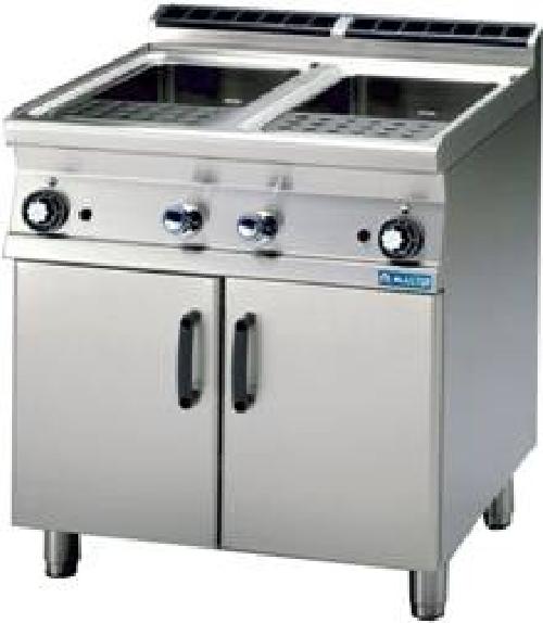 Cuocipasta INOX a Gas – Serie 900 Litri 40+40 – N. 2 Vasche 30,7×50,9×32,7 cm – N. 6 Cestelli 1/3 29x16x20 cm Rubinetto carico acqua – Sfioratore + scarico a pavimento KW 27,900 Dimensioni : 80x90x90 cm