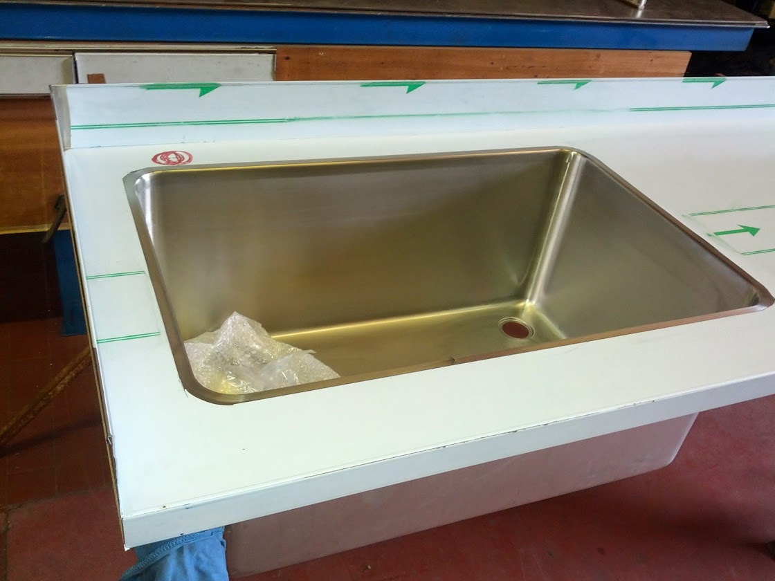 Applicazione di una Vasca INOX su un Piano da Lavoro Vasche a saldare : – 40x40xh25 cm – 50x40xh25 cm Vasche da incasso : – Ø 36 x 18h cm – Ø 38 x 16h cm – Ø 42 x 16h cm – 33x33xh20 cm – 40x40xh20 cm