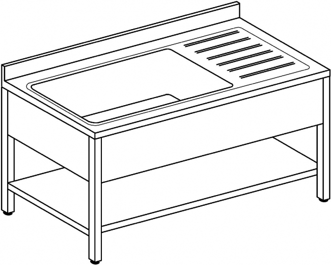 Lavelli Vascone INOX su Banco per Pentole – 1 Vasca e 1 Gocciolatoio DX o